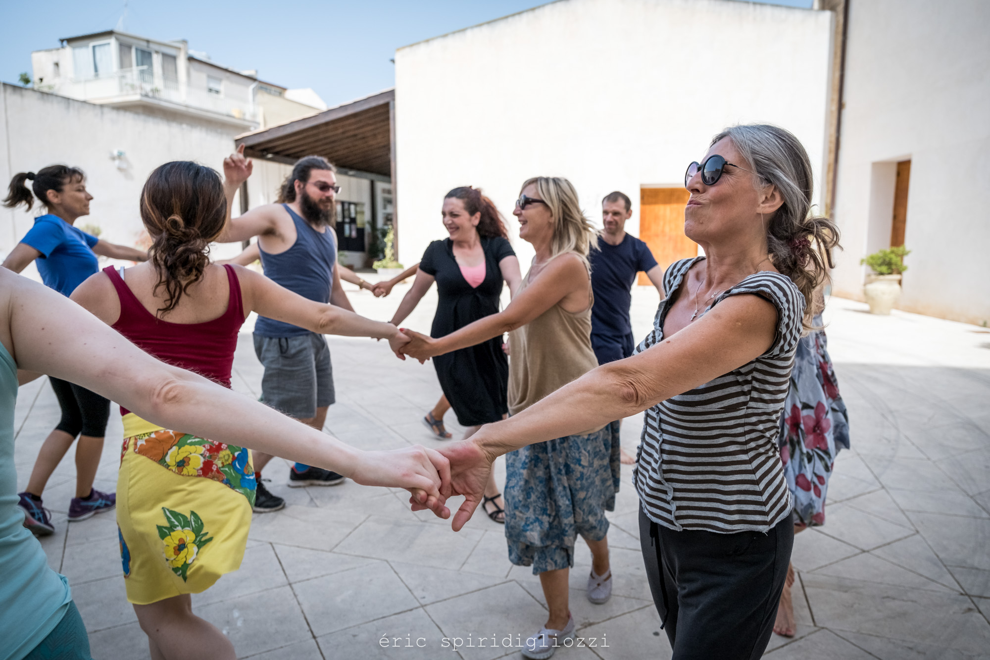 Une expérience qui s’enrichit grâce à de nombreuses expériences menées également dans le domaine médical et psycho-pédagogique, à travers la collaboration et le travail d’équipe effectué avec des psychologues et des psychiatres qui, à l’intérieur de structures spéciales, cliniques et hôpitaux en France et en Italie, ont accompagné le travail de transmission de la danse populaire du sud de l’Italie comme soin pour les personnes porteuses de handicap, et les enfants, les adolescents ou les adultes ayant des difficultés psychologiques.